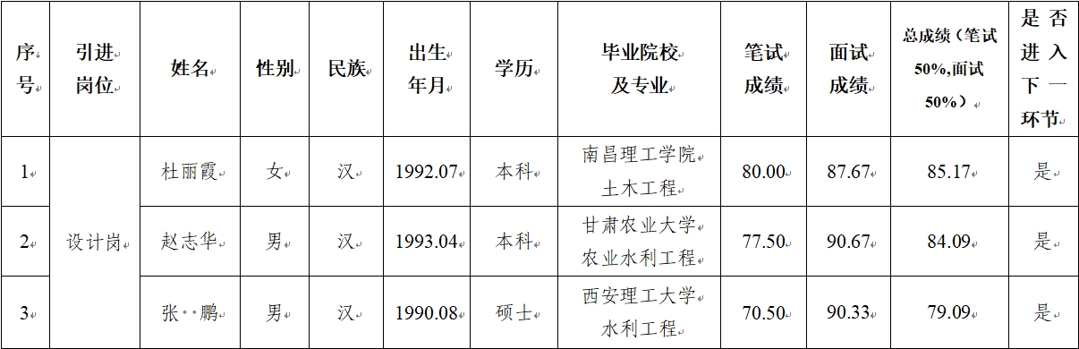 2024-09-25根据《平凉市泾东水利水电勘测设计有限责任公司2024年特殊人才招聘公告》,市产投集团在组织报名、资格审查的基础上,按程序完成了笔试、面试工作,现将笔试、面试成绩公示如下: